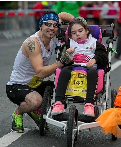 Keith started running with his daughter Alanna (who had spastic quadreplic cerebral palsy) in October 2016 to run the Dublin City marathon in October 2017.